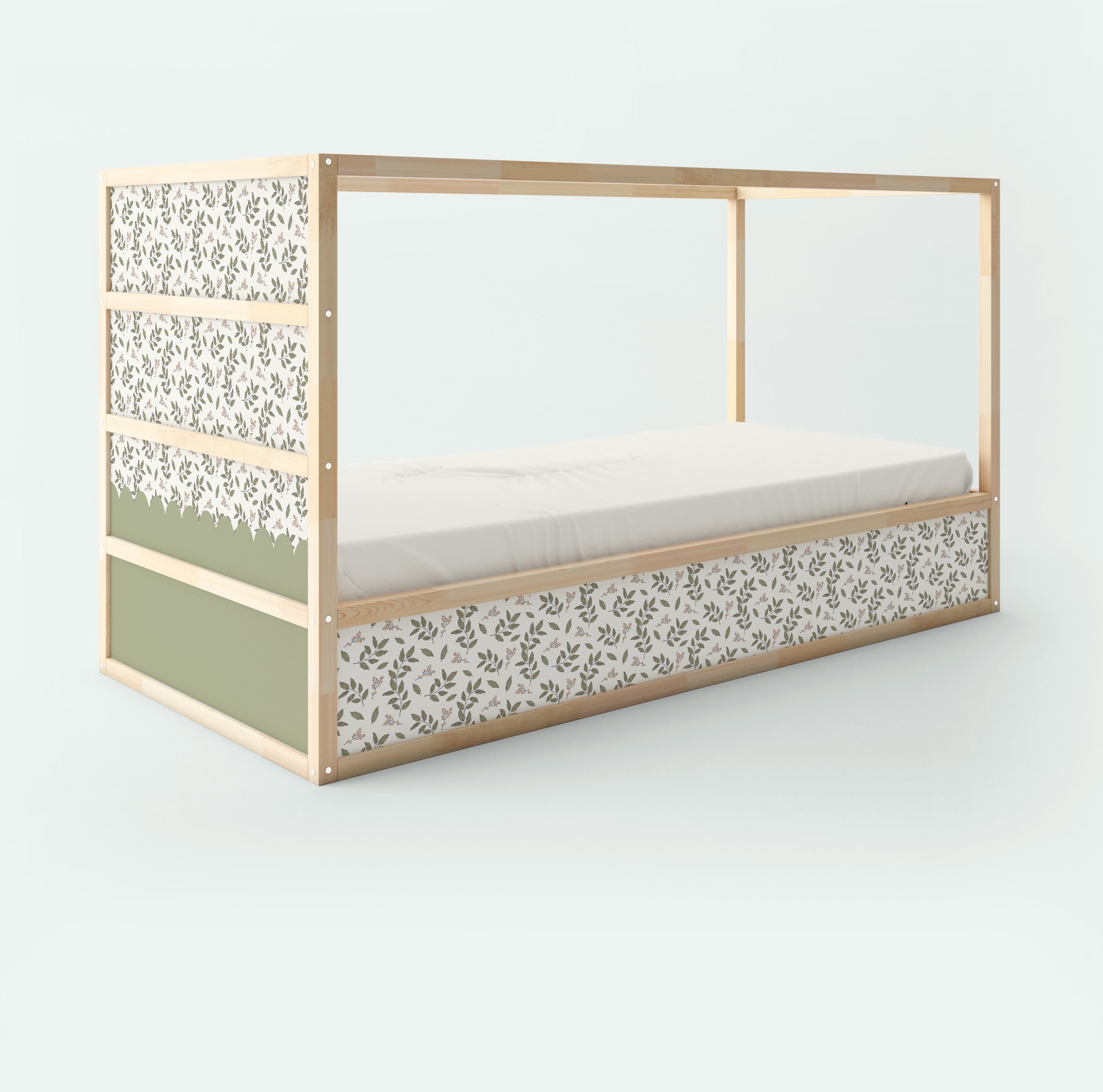 Gałązki i zielona falbanka – naklejki na łóżko piętrowe