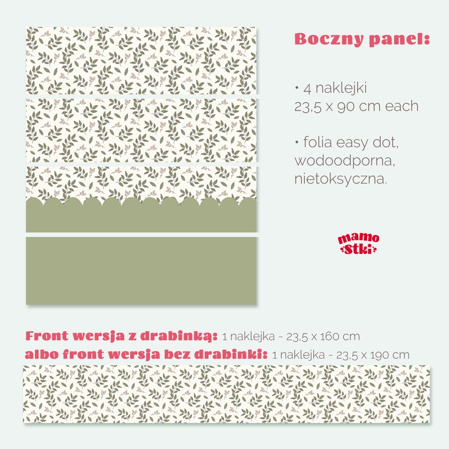Metamorfoza zajmie Ci kilka minut – naklejki otrzymujesz w dociętych pasach, na folii odpornej na zabrudzenia, ze specjalnym klejem, niezostawiającym śladu na podłożu. Komplet naklejek jest kompatybilny z łóżkiem KURA – jest jednak możliwość wykonania naklejek na podobny wymiar.